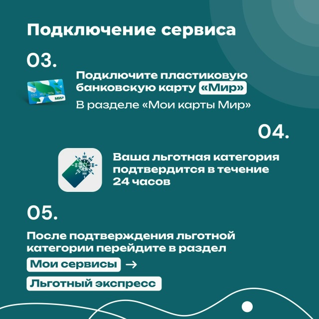 Для того, чтобы воспользоваться сервисом, необходимо скачать мобильное приложение «Карта жителя НСО», авторизоваться в нём через Госуслуги и привязать карту «Мир». После подтверждения льготной категории в течение суток сервис «Льготный экспресс» станет доступен.